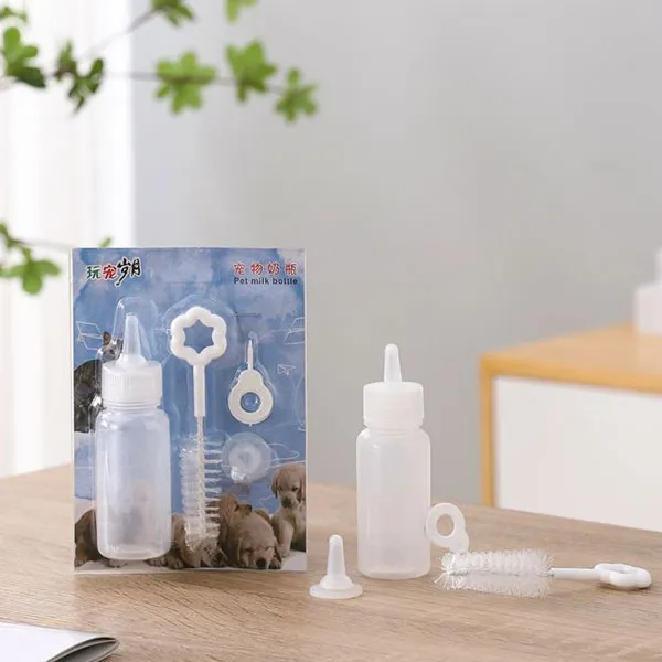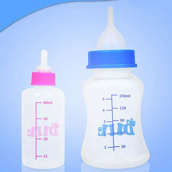 مجموعة فرشاة حلمة الحيوانات الأليفة، زجاجة تغذية عملية لمنتجات الحيوانات الأليفة للكلاب والجرو والقطط والهريرة مريحة جدا امنح الحيوانات الصغيرة هدية لطيفة تحديد: المواد: زجاجة بلاستيكية + حلمة مطاطية المقياس: 150 مل 60 مل