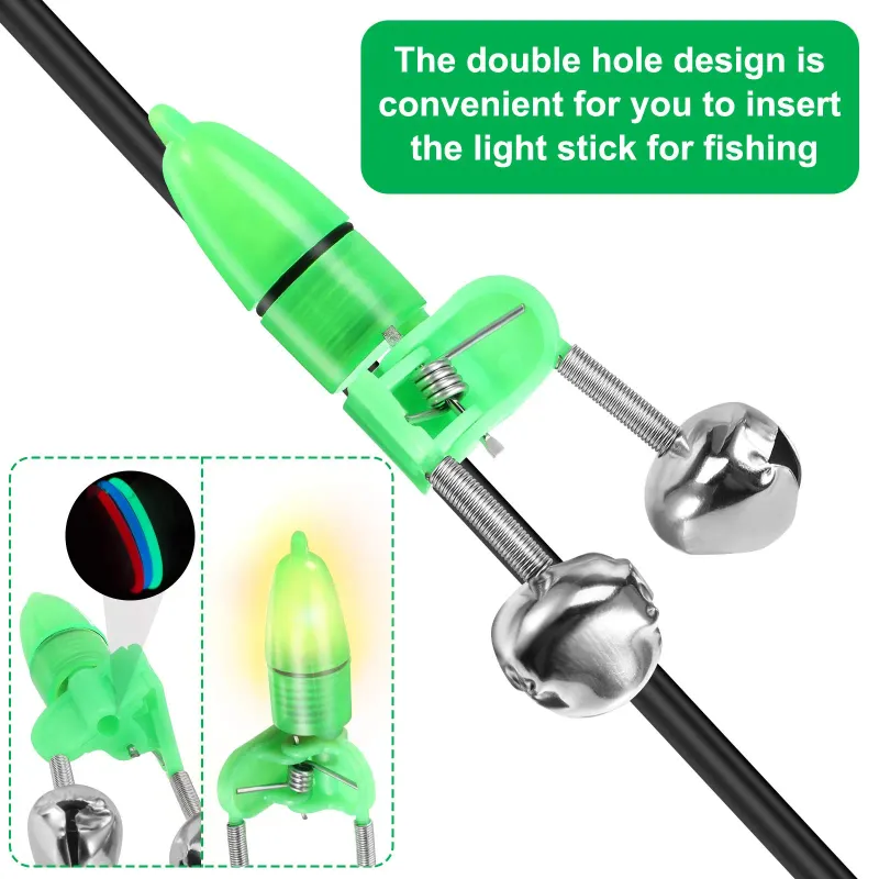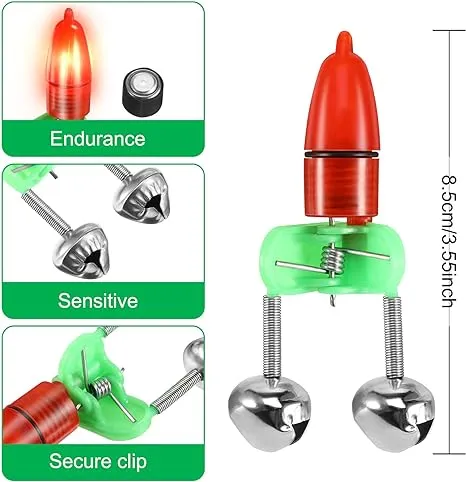 جرس تنبيه للصيد في الليل من سكاي ليتي مع أجراس مزدوجة مؤشر صيد السمك لصيد السمك ملحقات محمولة للطعم منبه جرس قصبة السمك منبه لصيد الأسماك