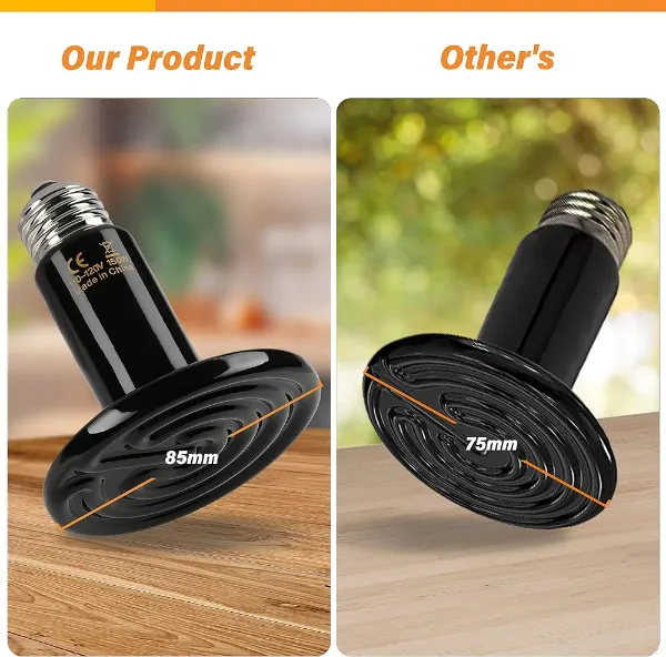 الميزات: ✔هذا 75 واط أسود الأشعة تحت الحمراء مصباح الحرارة مصنوع من عنصر السيراميك الصلبة ، لديها ميزة الإشعاع الحراري الكمال وليس الضوء المنبعث ، لا يزعج الجدول الزمني النوم العادي الزواحف (يوم أو ليلة) ، كبيرة للحيوانات الأليفة ، سحلية ، حظيرة ، الدجاج ، السلاحف ، ثعبان ، الحرباء ، التنين الملتحي ✔هذا مصباح الحرارة السيراميك هو بسيط وسهل التركيب ، مجرد المسمار في مقبس المسمار E27 الخزف القياسية (الاهتمام: استخدام فقط مع مقبس الخزف ، لأن المقبس البلاستيك قد تذوب حامل المصباح) ✔هذا الأشعة تحت الحمراء السيراميك باعث الحرارة لمبة هو الكمال 24 ساعة مصدر الحرارة للزواحف والبرمائيات. يمكن أن تستمر 9000-15,000 ساعة ، حتى أطول ✔درجة حرارة سطح هذه المصباح عالية جدا عند العمل ، من فضلك لا تستخدم يدك لاختبار درجة الحرارة. لا تلمس مصباح الحرارة مباشرة بعد إيقاف التشغيل ، يرجى الانتظار 1 ساعة على الأقل لتهدئة. أيضا يرجى ضبط المسافة بين مصباح الحرارة والحيوانات الأليفة تعبئتها: 1 * مصباح ملاحظة: مصباح تسخين 25-200 واط مناسب لفولتية 220 فولت (220-240 فولت) ، العميل الذي يحتاج إلى جهد 110 فولت (100-130 فولت) أو مصباح تسخين أبيض. يرجى الاتصال بنا
