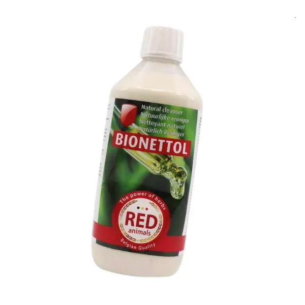 هو منتج تنظيف مركز طبيعي 100٪. يتكون فقط من الزيوت الأساسية ، ويمكن استخدامه في وجود الحيوانات. يتم رشها في المباني مثل الحمام ، الطيور ، بيوت الدجاج ، الأكواخ ، الاسطبلات ، الكوات … ولكن أيضًا في سلال النقل أو الخزانات. إنه غير ضار تمامًا لك ولحيواناتك الأليفة الجرعة: 50 مل لكل لتر من بخاخ الماء BIONETTOL est un produit nettoyant concentré 100% naturel. Composé uniquement d’huiles essentielles, on peut l’appliquer en présence des animaux. A pulvériser dans les bâtiments tels que pigeonniers, volières, poulaillers, clapiers, écuries, niches… mais également dans les paniers de transport ou casiers. Il est totalement inoffensif pour vous et vos animaux. Dosage : 50ml par litre d’eau en pulvérisati