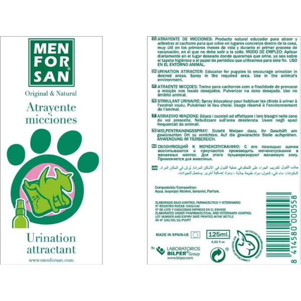 Spray à base d’extraits naturels de plantes et essences naturelles qui stimulent le chiot à uriner dans l’endroit désiré, une fois le produit est aspergé là. Idéal comme complément de le dressage du chiot.