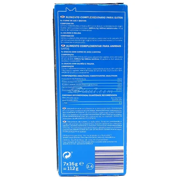 Ce produit ne remplace pas l'alimentation quotidienne Considérant qu'il s'agit d'un apport énergétique complémentaire Il convient de le doser modérément Il est nécessaire que votre chat ait toujours suffisamment d'eau à sa disposition La quantité recommandée est pour toutes les variétés