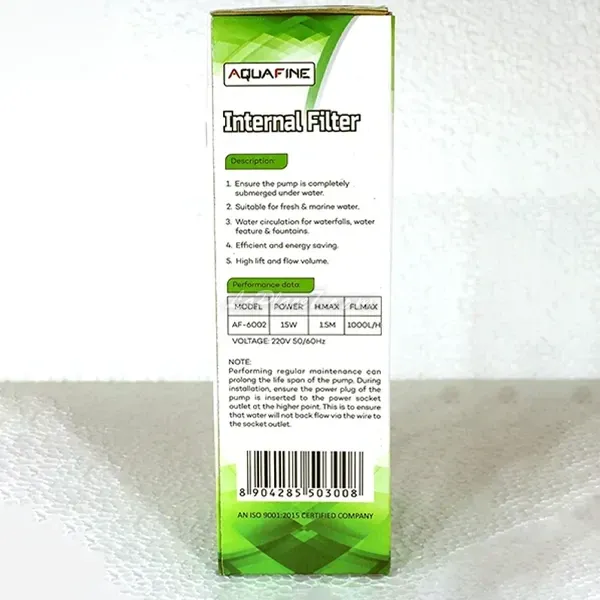 Pompe de filtration d'aquarium pour poissons, Internal filter, Aquafine, AF-6002