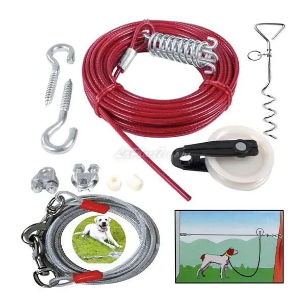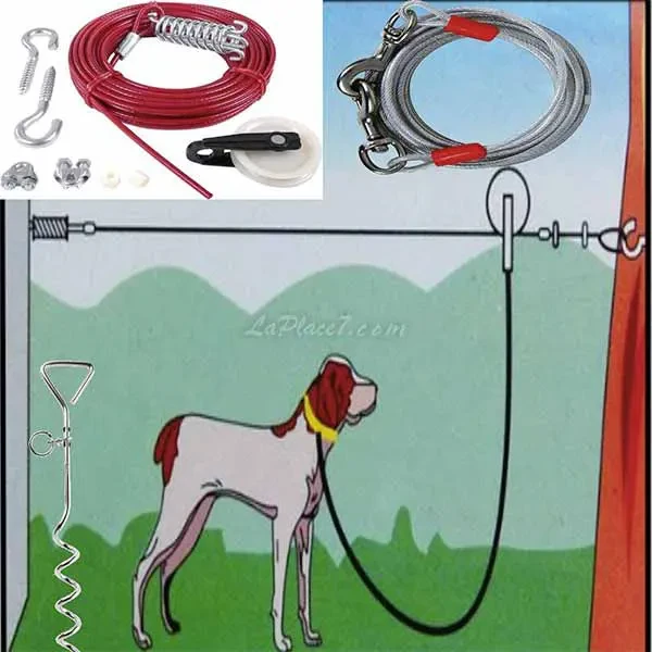 Système de chariot de 15M pour chien avec câble d'attache de 3M