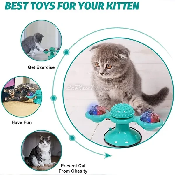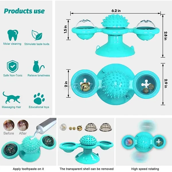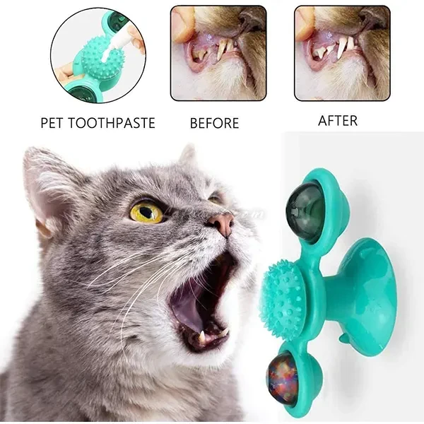 Jouet moulin à vent et brosse à dents pour chat, Rotate